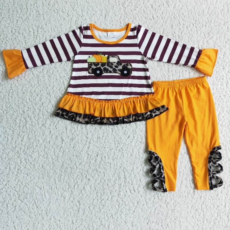 RTS NO MOQ Little girl Boutique Christmas deer embroidery fall outfits kids wholesale toddler girl child clothing