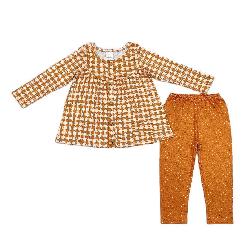 RTS NO MOQ Little girl Boutique Orange plaid print fall outfits kids wholesale toddler girl child clothing