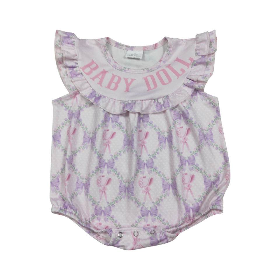 RTS NO MOQ Spring Baby Girls Bow Design Short Sleeve Summer Romper Wholesale Kids Clothes