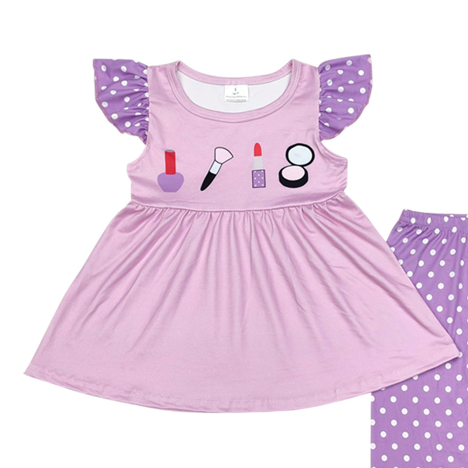 RTS NO MOQ Sweet girl Boutique purple pattern fall outfits kids wholesale toddler girl long sleeve clothing