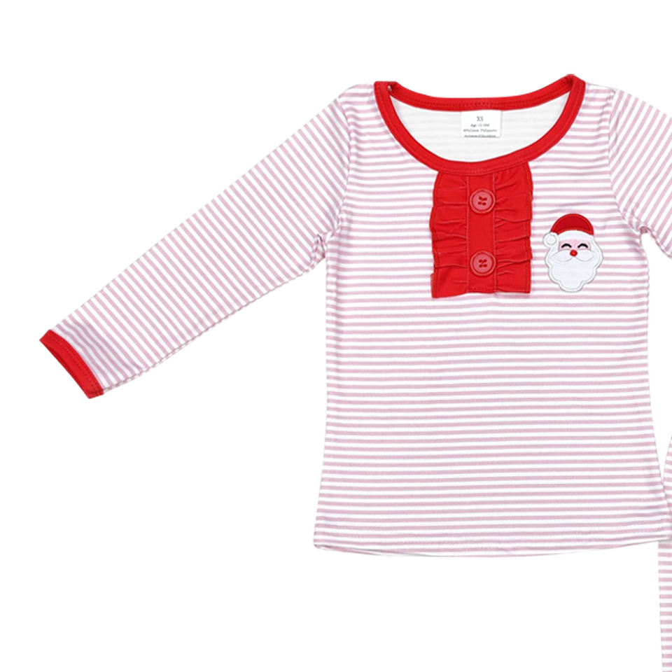 RTS NO MOQ Sweet girl Boutique pink stripe Christmas santa applique fall outfits kids wholesale toddler long sleeve clothing