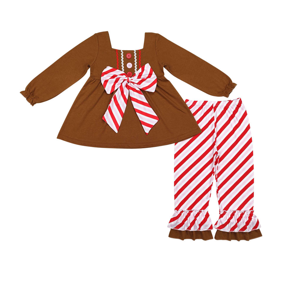 RTS NO MOQ Sweet girl Red stripe brown Boutique fall outfits kids wholesale toddler girl floral matching children clothing