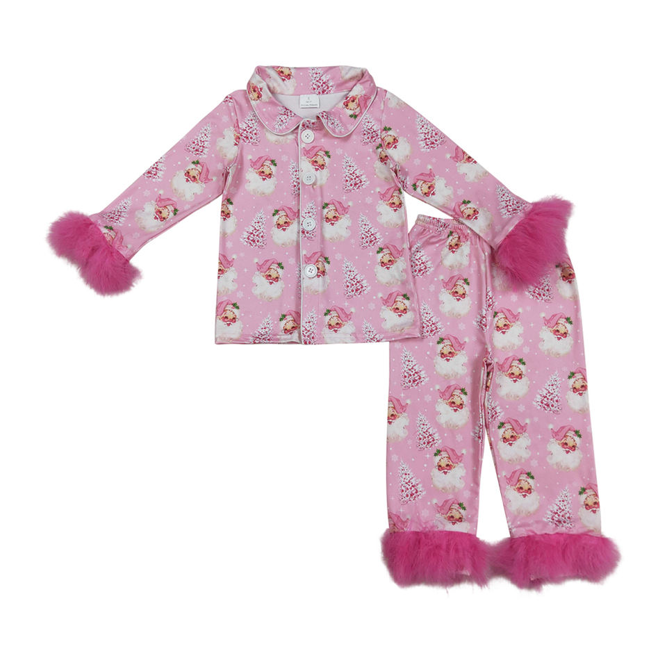 RTS No MOQ Long Sleeve Fall Winter Christmas Santa Claus Outfit for Girls Kids Baby Girl Christmas Pajama Set Wholesale Clothes