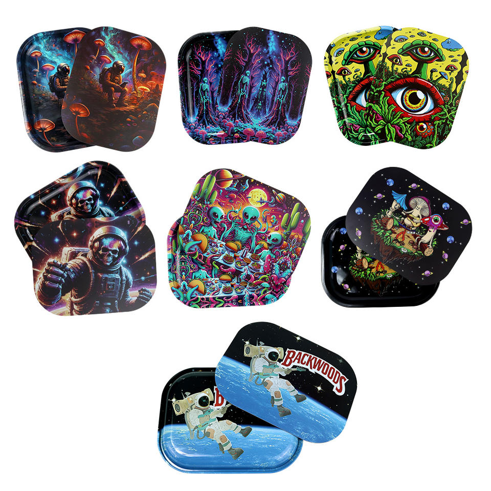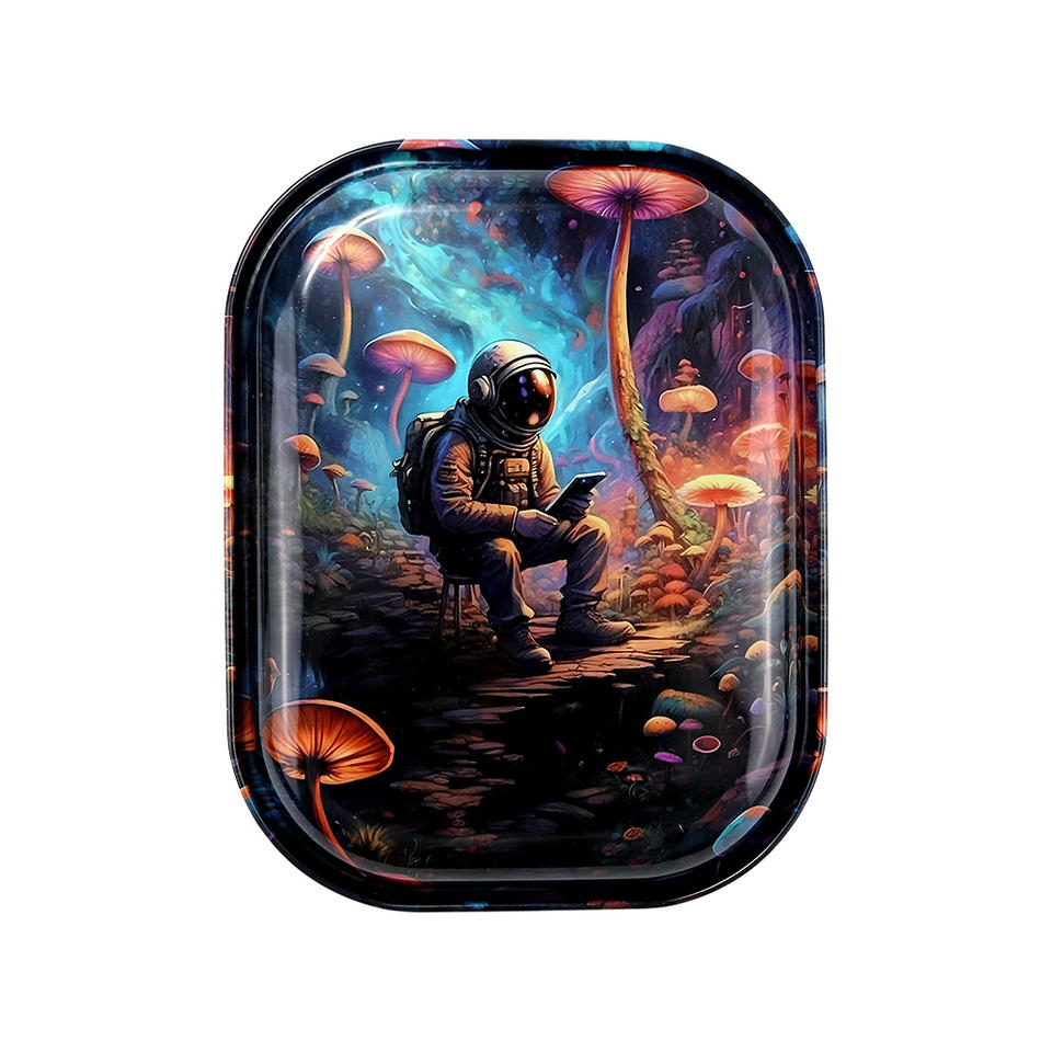RTS Smoke Shop Wholesale Astronaut Mushroom Metal Rolling Tray With Lid 18x14cm Smoking Accessory Tobacco Tray