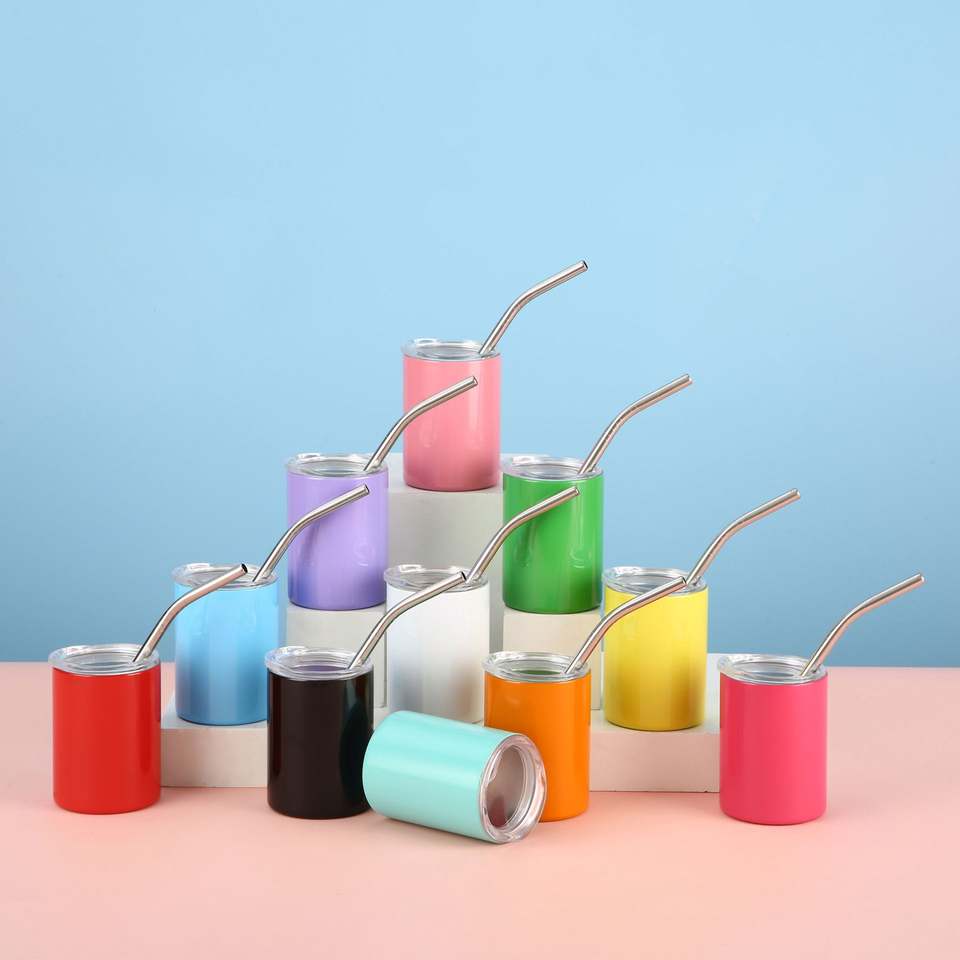RTS Sublimation 3oz Mini Regular Tumbler Shot Cup Mixed Color Double Wall Stainless Steel Tumbler Cup With Lid and Metal Straw