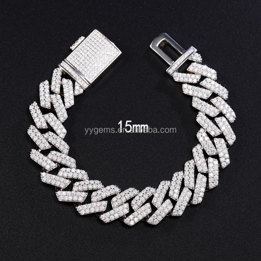 RTS VVS Diamond Chain 15mm Iced Out Moissanite Diamond Chain S925 Sterling Silver Cuban Link Chain for Men Jewelry