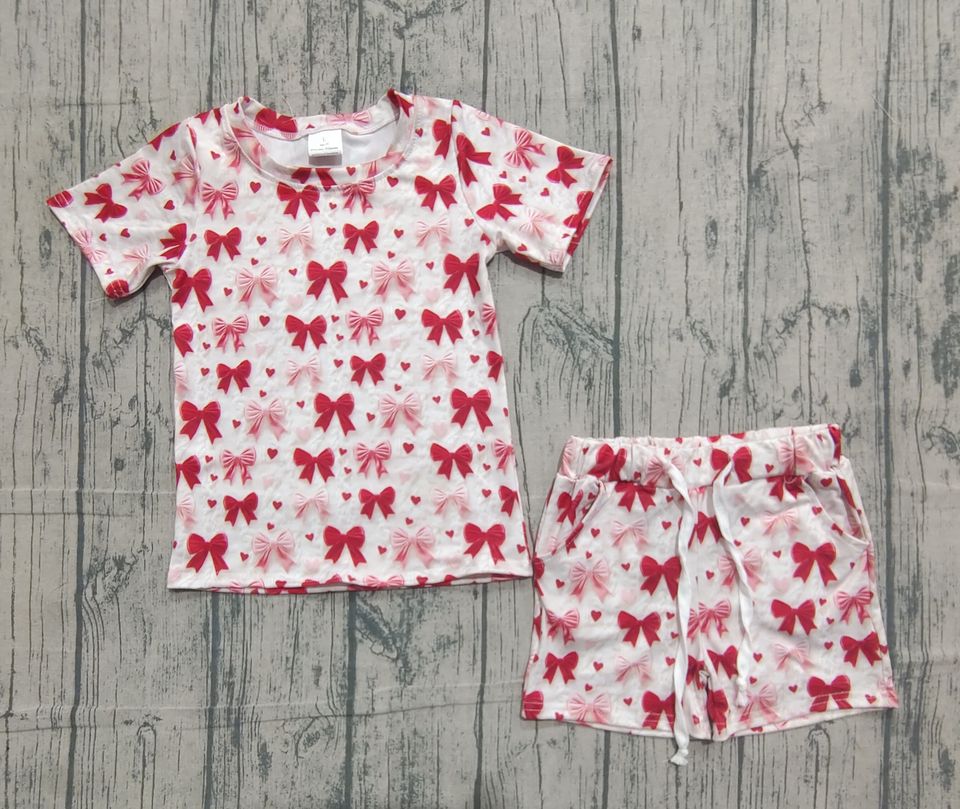 RTS Valentine's Day Coquette Bows Love Girls Clothing T-Shirt Shorts Outfits New Baby Girl Clothes Wholesale Kids Clothing Set