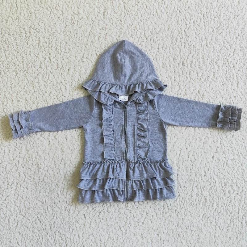 RTS top baby girl adorable Boutique green solid floral top kids toddler coat winter design child clothing zipper set