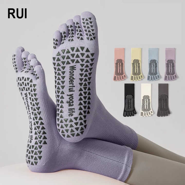 RUIQUWIN 2026 Spring Custom Printed 5 Toe Yoga Socks Women Non Slip Pilates Grip Cotton Breathable Athletic Sport Indoor