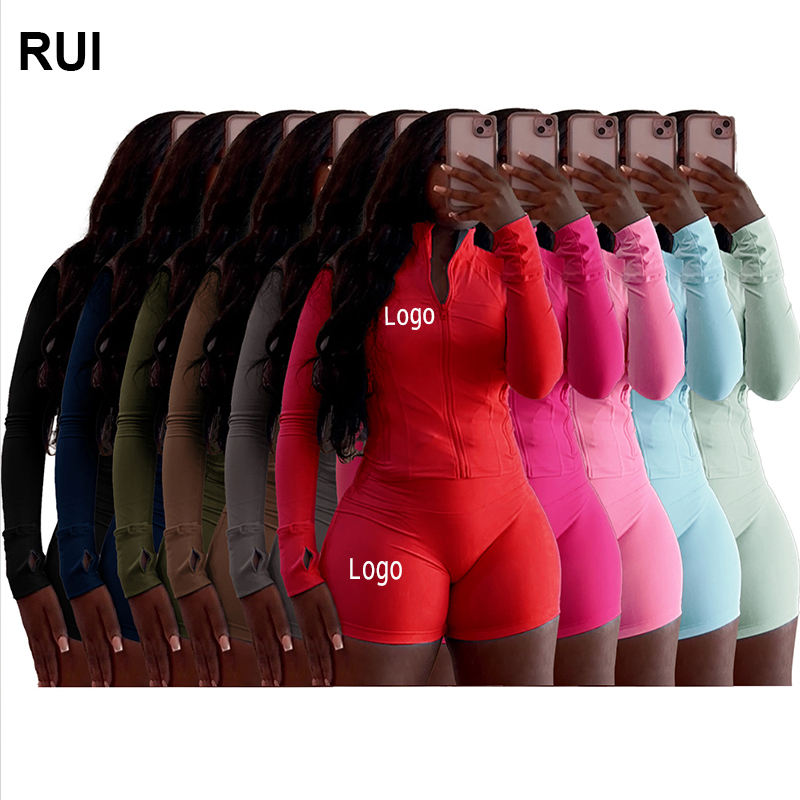 RUIQUWIN Wholesale Women's Breathable Fitness Sportswear Sexy Tight Yoga Sport Long Sleeve Shorts Two Piece Set