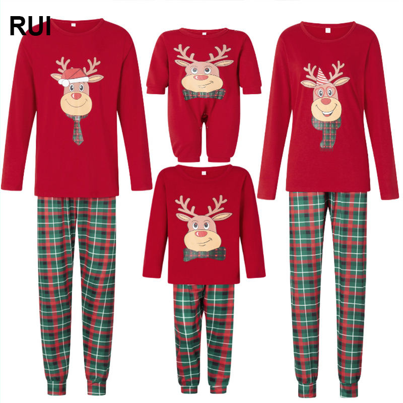 RUIQUWIN Wholesale Women's Christmas Pajama Set Long-Sleeve Tops Deer Prints Plaid Pants for Winter Homewear Parent-Child