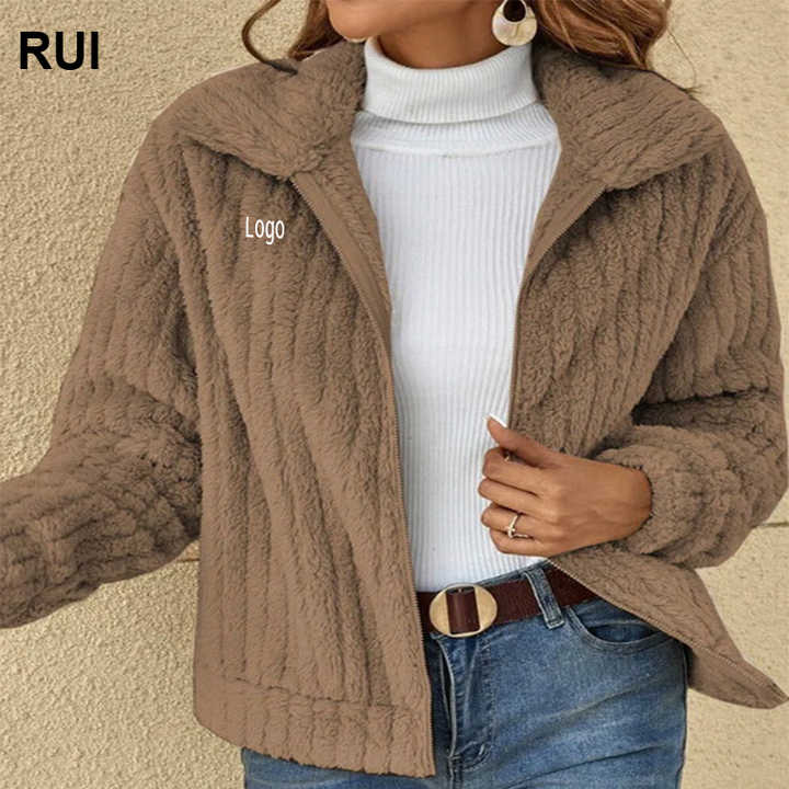 RUIQUWIN Wholesale Women's Wear New Furry Cardigan for Autumn and Winter Lapel Short Jacket Casual Coat
