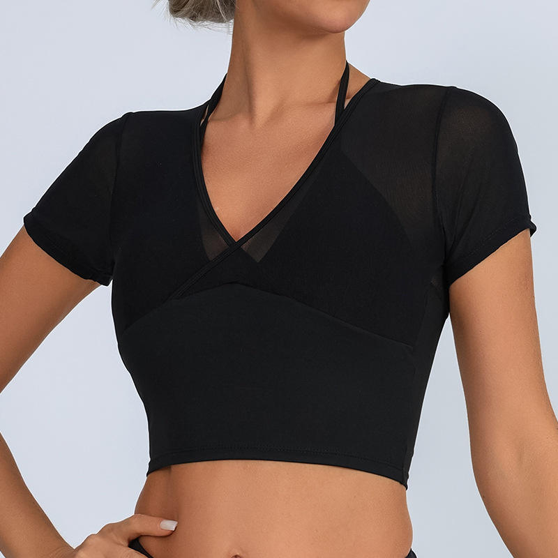 RUIQUWIN Women's New Sports Fitness Top V-neck Four-Way Stretch Sexy Breathable Mesh Short Sleeve Quick Dry Yoga T-shirt
