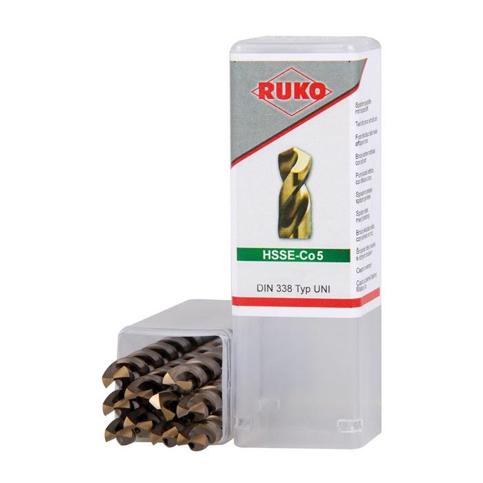 RUKO Twist drill DIN DIN 338 Type UNI nominal dm 2.5 mm HSSE-Co 5 cylinder shank 5xdmright-hand cut. spiral length 30 mm