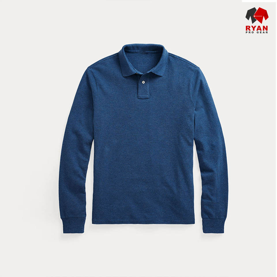 RYAN PRO GEAR Custom Men's Polo Shirts Front Custom Logo Anti-Wrinkle Knitted Viscose/Polyester Fabric Full Sleeve OEM Service