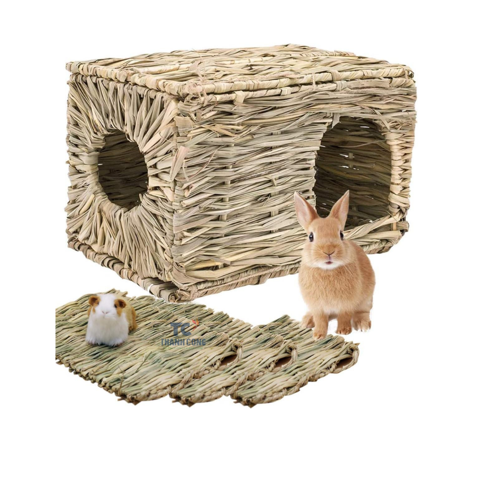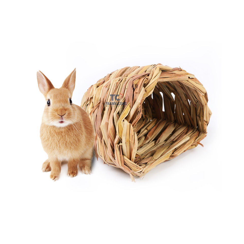 Rabbit Grass House Hideout Bunny Chew Toys Handmade Woven Hay Bed Natural Edible Grass Hut Rabbit Guinea Pig Chinchilla