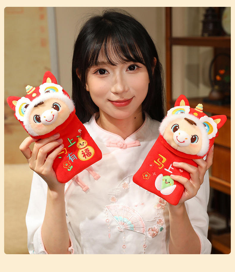 Rabitai Lion for Flannel Teddy Bear with Mesh Lining Super Soft Fabric New Year Money Red Envelope Doll