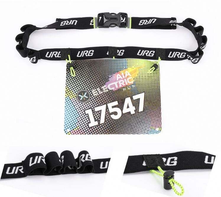Stainless Steel Race Number Bib Belts 6 Energy Gel Loops Foldable for Marathon Triathlon Running-No Safety Pins Required (Black