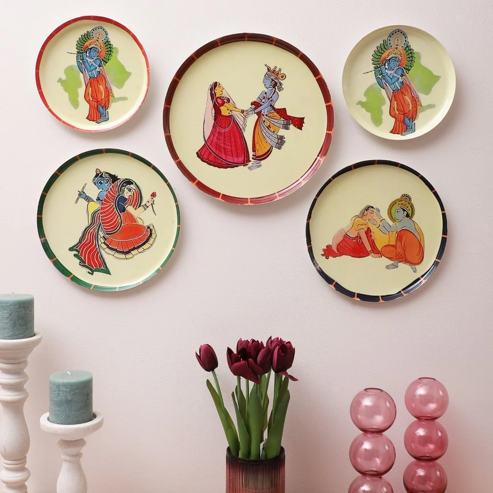 Radha Krishna Decorative Metal Wall Plate Sticker Enamel Dish Serving Table Top for Christmas Decorations Wall Hangings