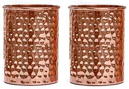 Radiance Set of 3 Polished Copper Ayurveda Diamond Design 1000ml Bottles with 2 Glasses for Wedding Decorations