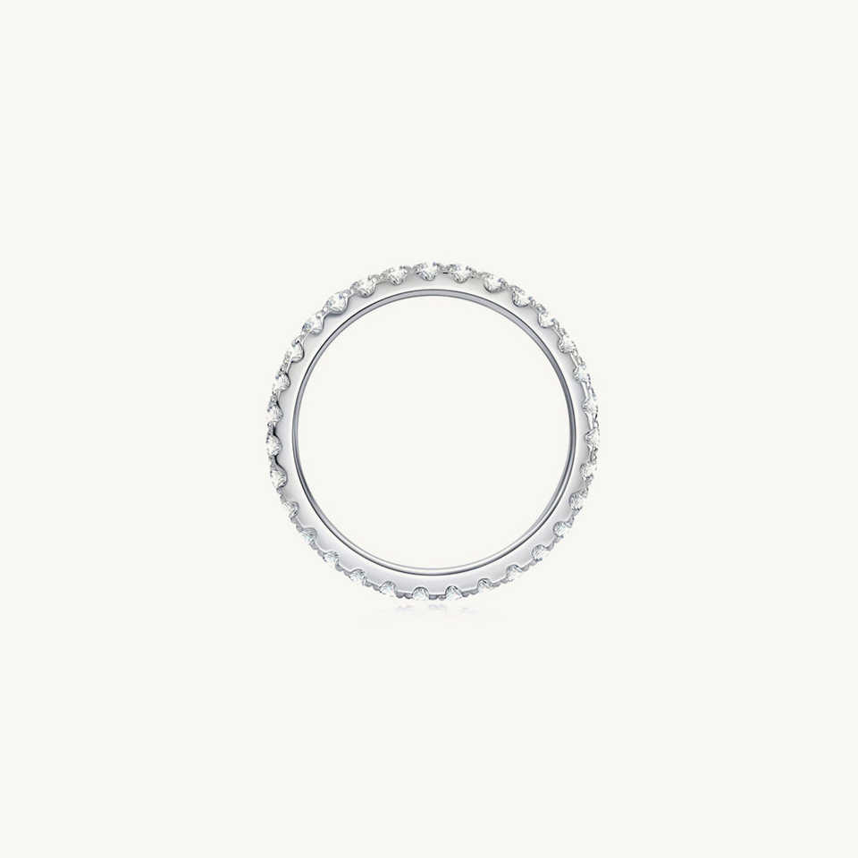 Radiant And Symbolic Moissanite Diamond Eternity Anniversary Band Ring 925 Sterling Silver With Line of Shimmering Stones
