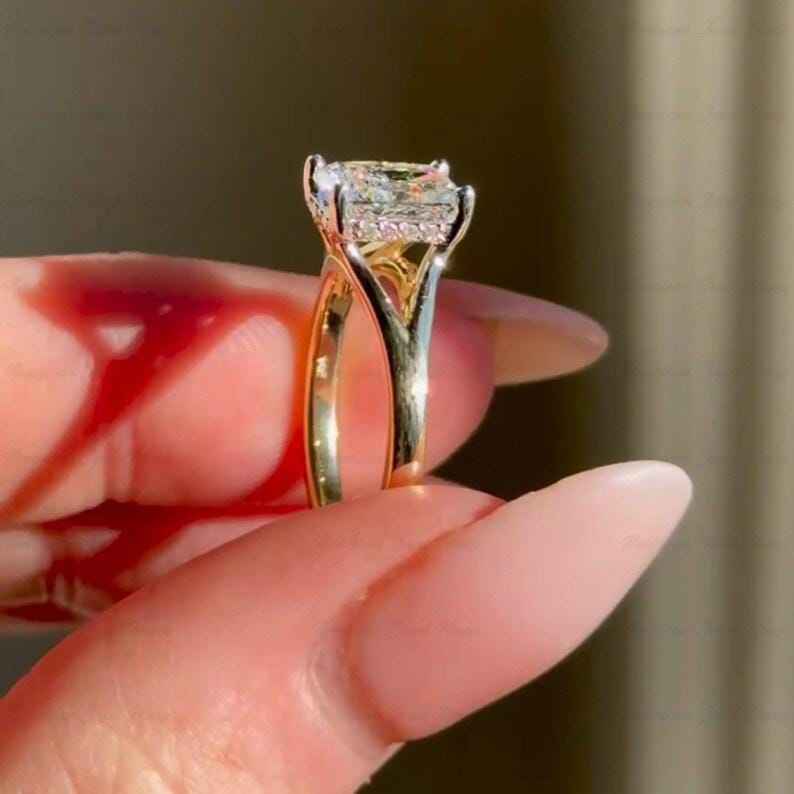 Radiant Cut 1.61CT Lab Grown Diamond Solitaire Split Shank Ring 10K Solid Gold Fine Wedding Promise Gift Jewelry For Partner