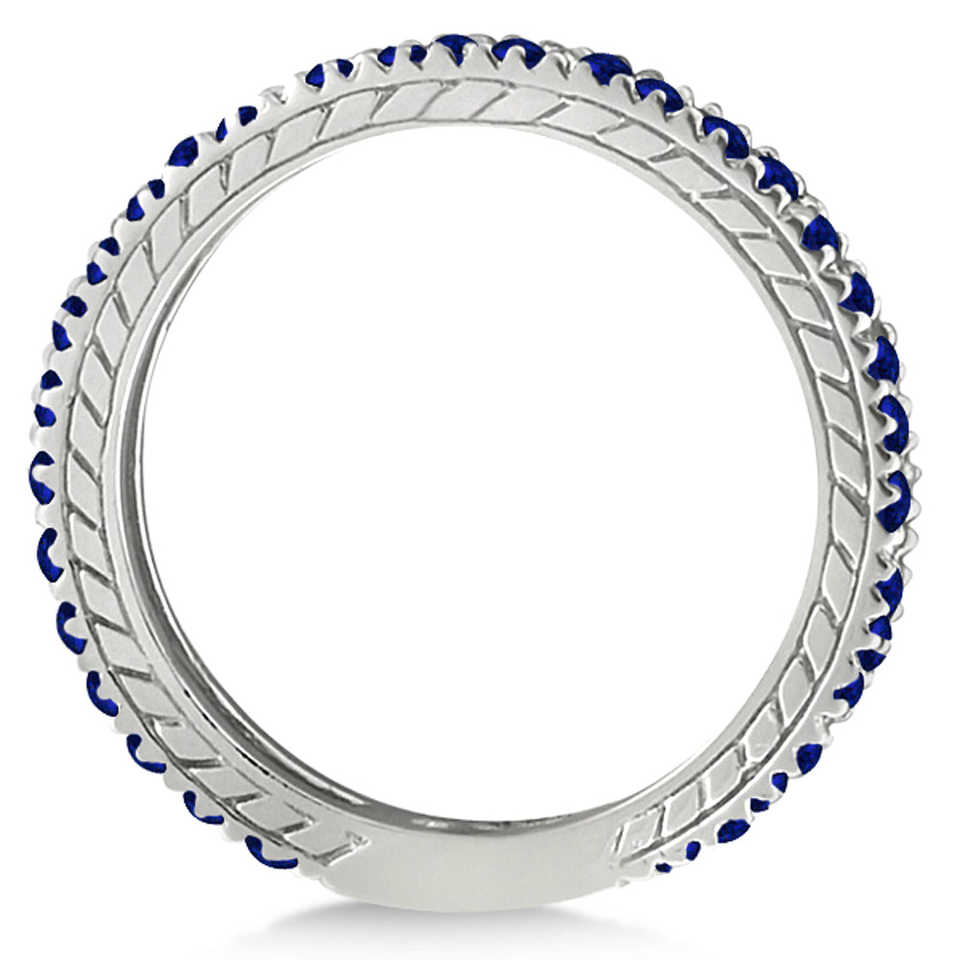 Radiant Cut Blue Sapphire Eternity Ring 14k White Gold Anniversary Band Geometric Pattern 1.16ct Natural Stone Rhodium Plating