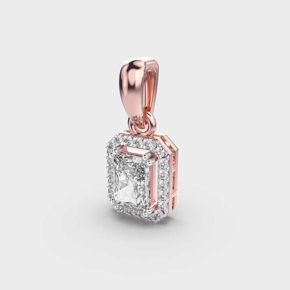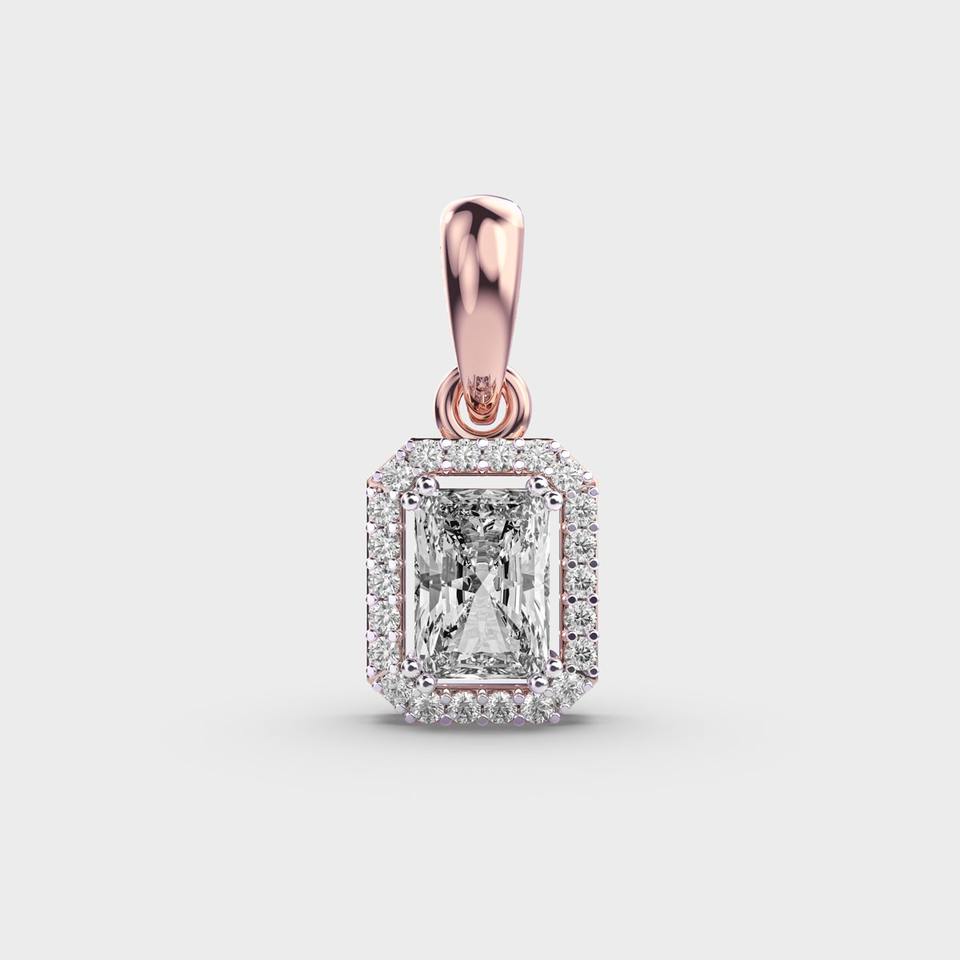 Radiant Cut Diamond Halo Pendant in 9KT White/Rose/Yellow Gold Vintage Style Rhodium Plated IGI Certified Women's Jewelry
