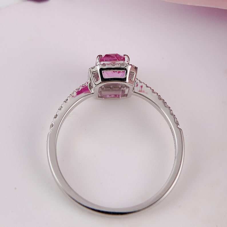 Radiant Cut Pink Sapphire Engagement Ring Diamond Halo Pave Zircon Promise Ring 925 Sterling Silver Jewelry for Women