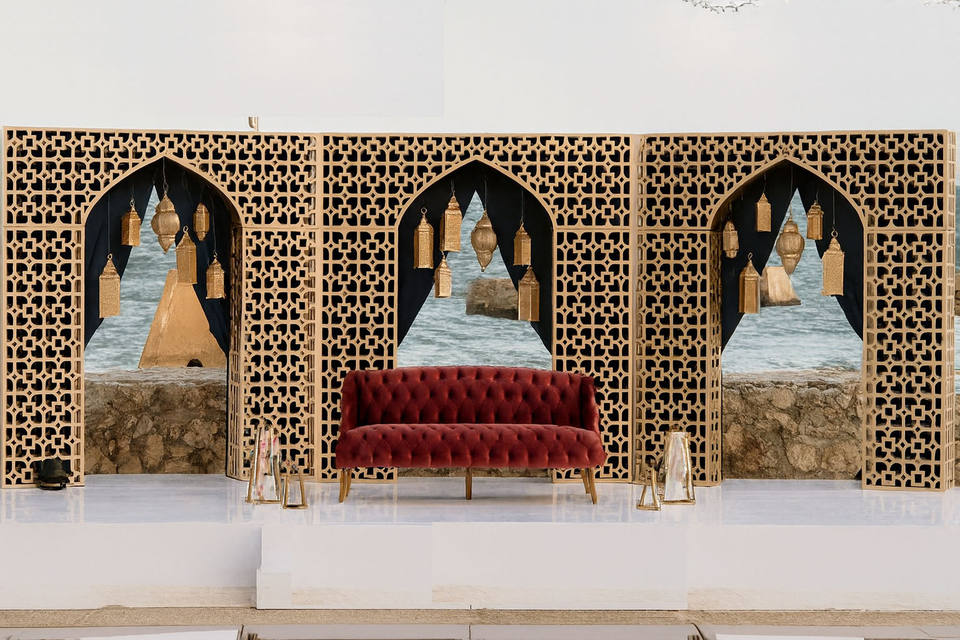 Product name:Radiant Look Reception Golden Frame for Stage Decor