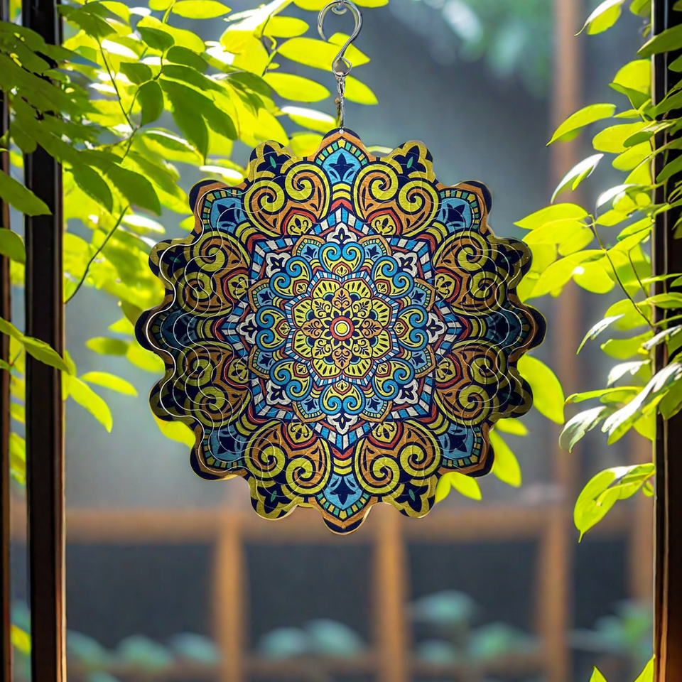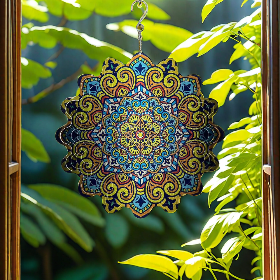 Radiant Mandala Art Deco Wind Spinner Handcrafted 12inch Customized Color Garden Ornament for Bursting Color