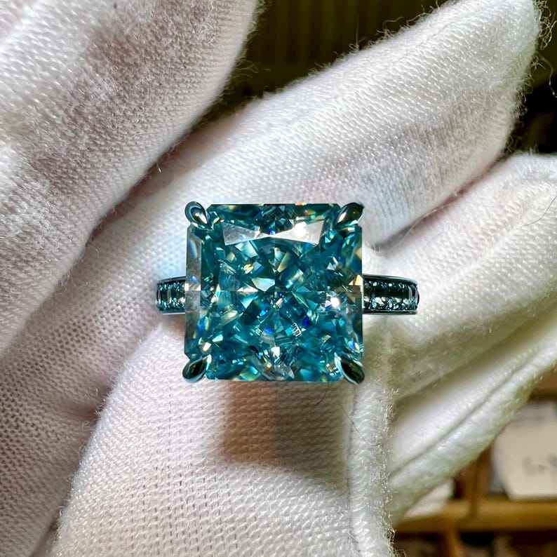 Keyword:Radiant Natural Blue Moissanite 14K Gold Exclusive Ring Unique Luxury