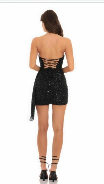 Radiant Nights Strapless Black Bridesmaid Dress with Sequin Tassel Corset for Women's