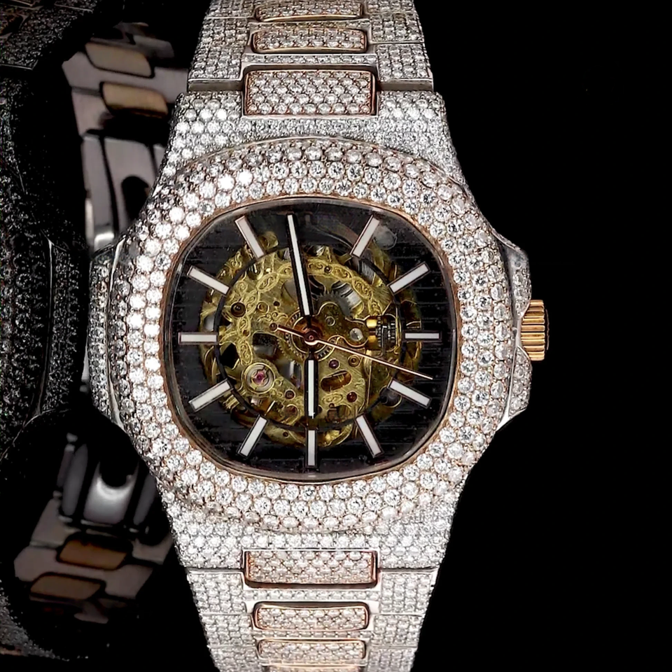 Radiant Opus Rose White Tone 41MM Iced Luxury Moissanite Diamond Stainless Steel Analog Watch Fashion Professional Look Men's