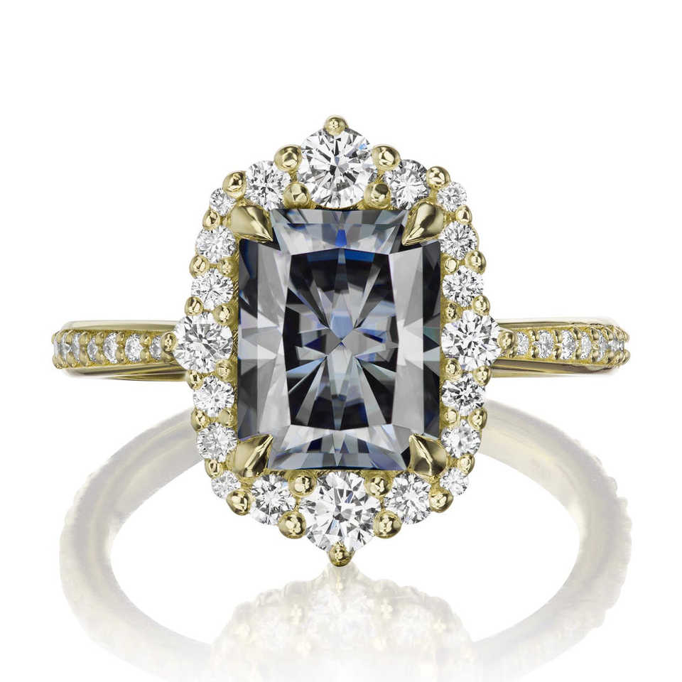 Radiant Original Grey Moissanite Halo Ring Radiant Cut Cluster Halo Engagement Ring Unique Grey Moissanite Ring Perfect Gift