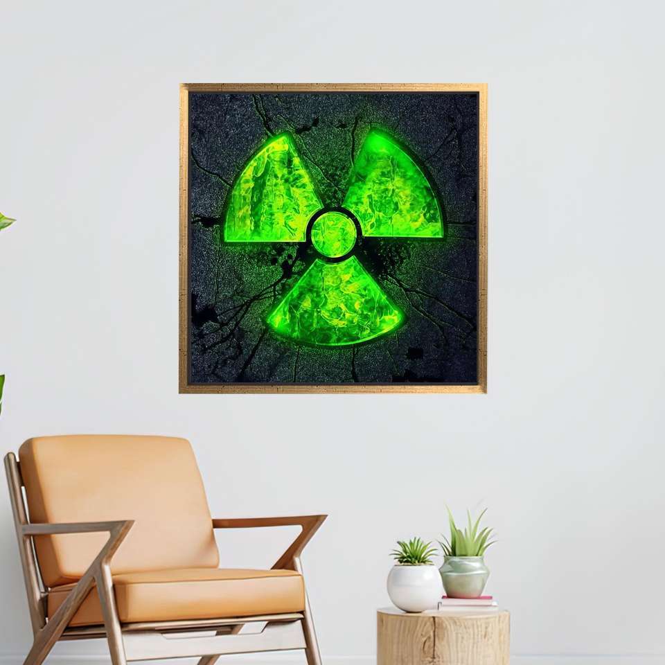 Radioactive Symbol Canvas Art: Neon Green Nuclear Warning Print,Gold Framed