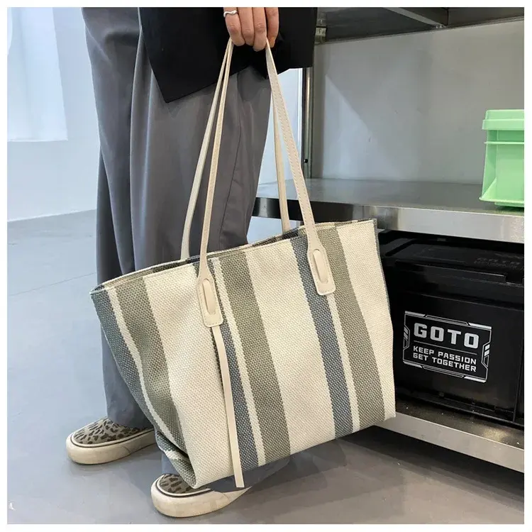 Raffia Summer Bags for Woman 2025 Stripe Designer Shoulder Crossbody Shopper Storage Bag Women Casual Canvas Handbag Tote Bag