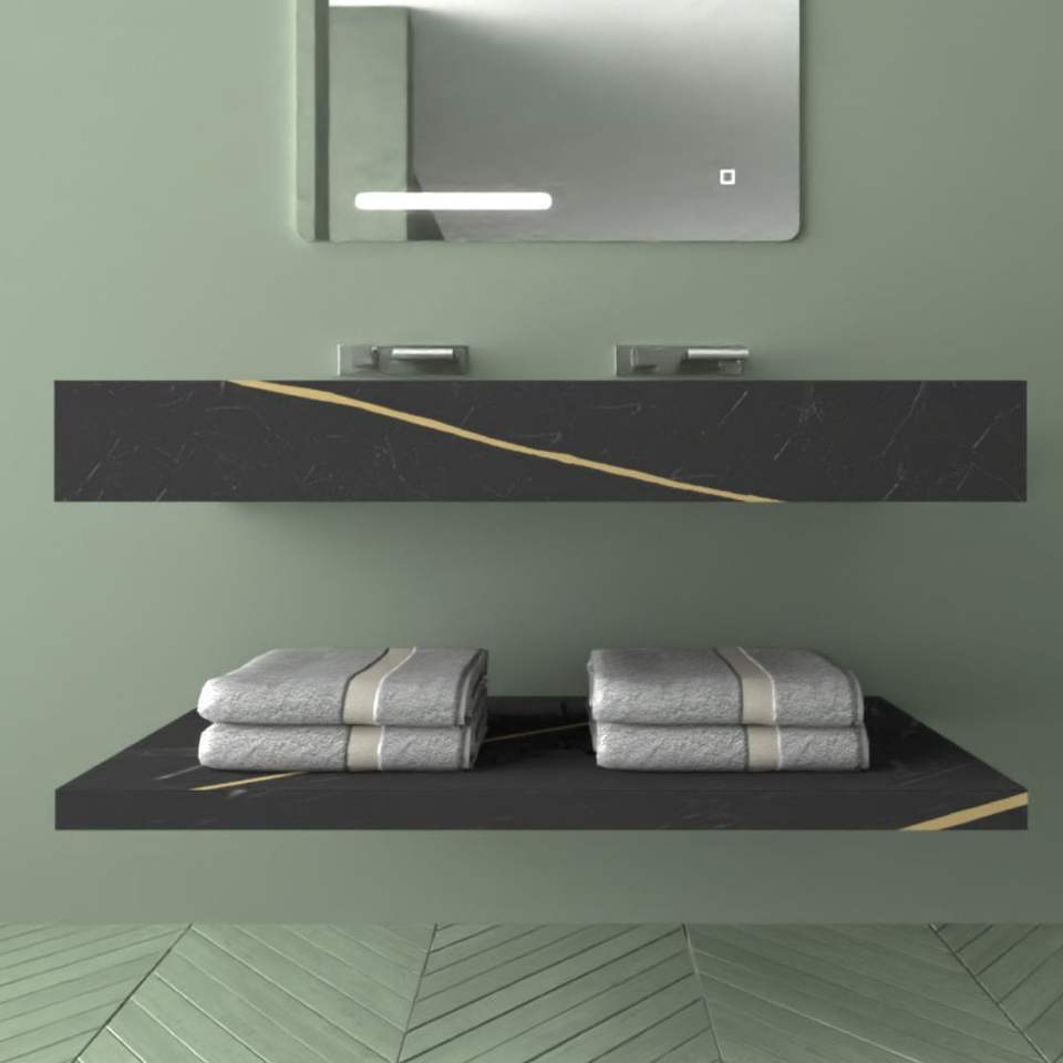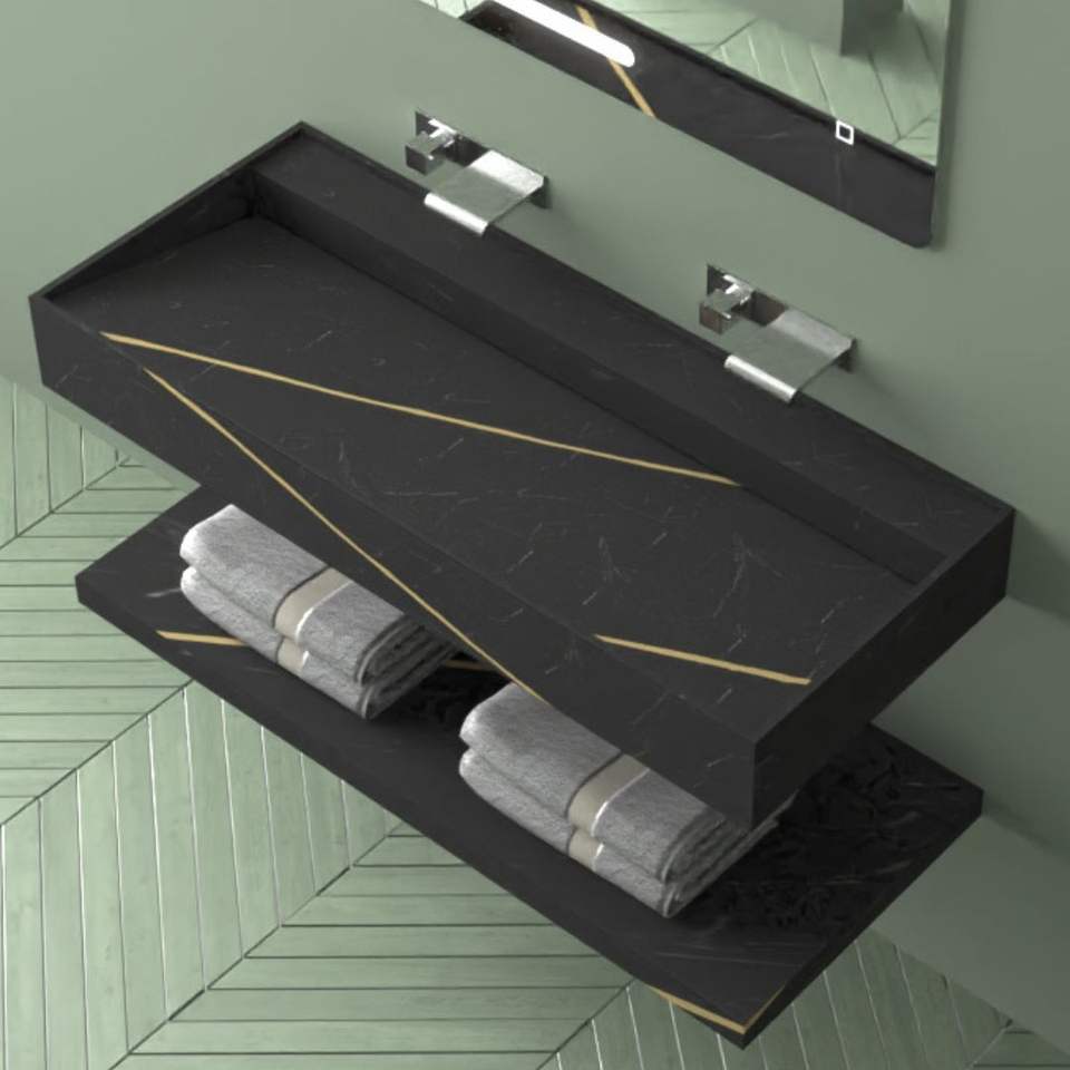 Raiatea 120 cm Art Stone Console Sink Black and Nut Veined Lullaby ***Pack of 1*** for Bathroom Use