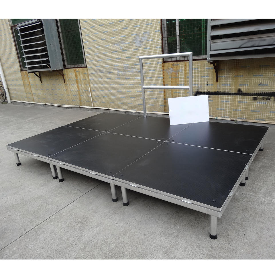 Rail Aluminum Height Adjustable Mobile Performance Stage with Wood Frame Non-Slip Surface Easy Assembly