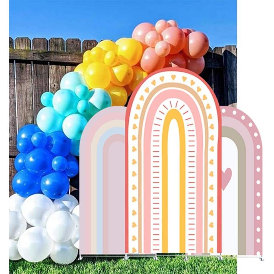 Rainbow Arch Double-Sided Purple Stripes Spandex Backdrop Elastic Cover for Birthday & Shower Parties in Stock Wall Decor