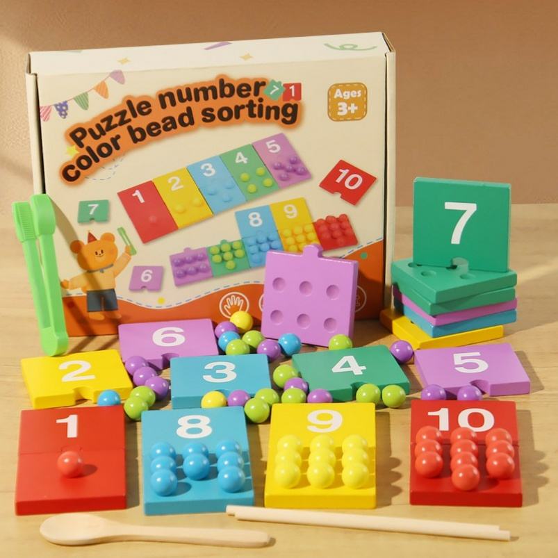 Rainbow Beads Games Number Color Sorting Learning Math Counting Puzzle Board Educational Toys for Kids Boys Girls