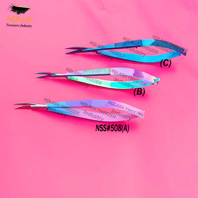 Rainbow & Blue & Pink 3 Colors Micro Spring Scissors LATEST Spring Scissors NQLASH Tweezers