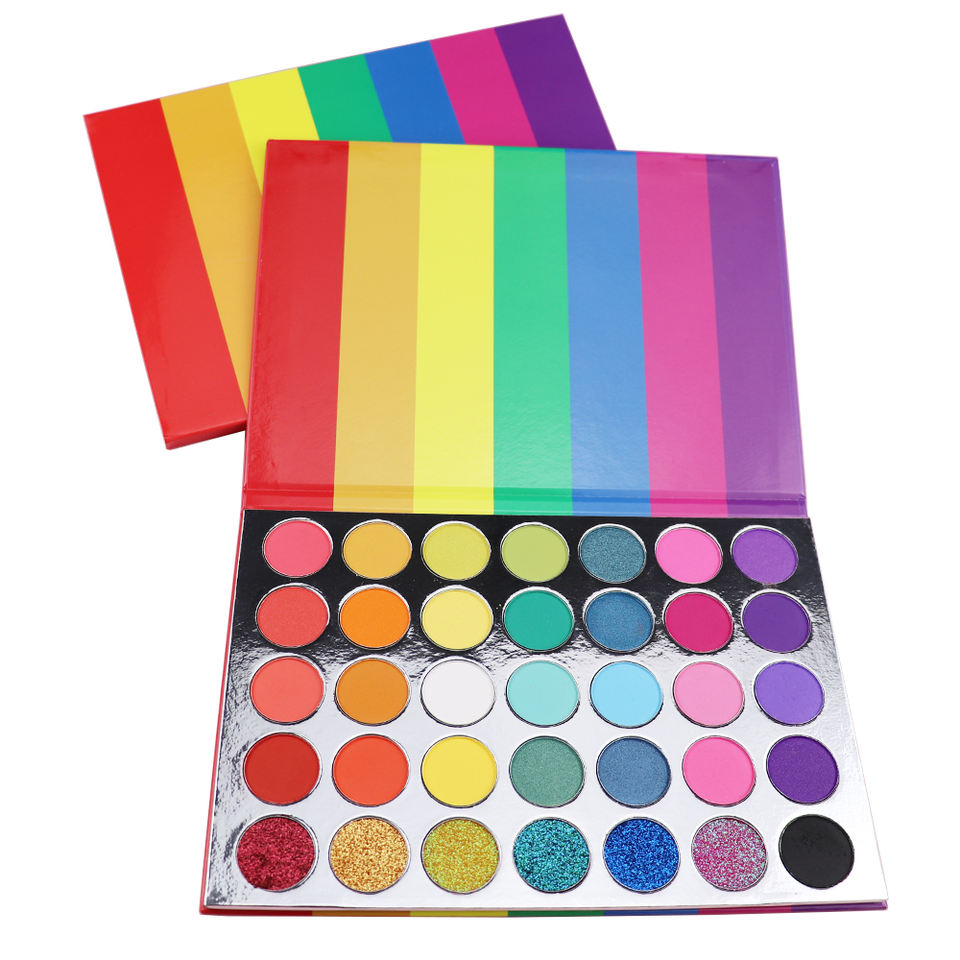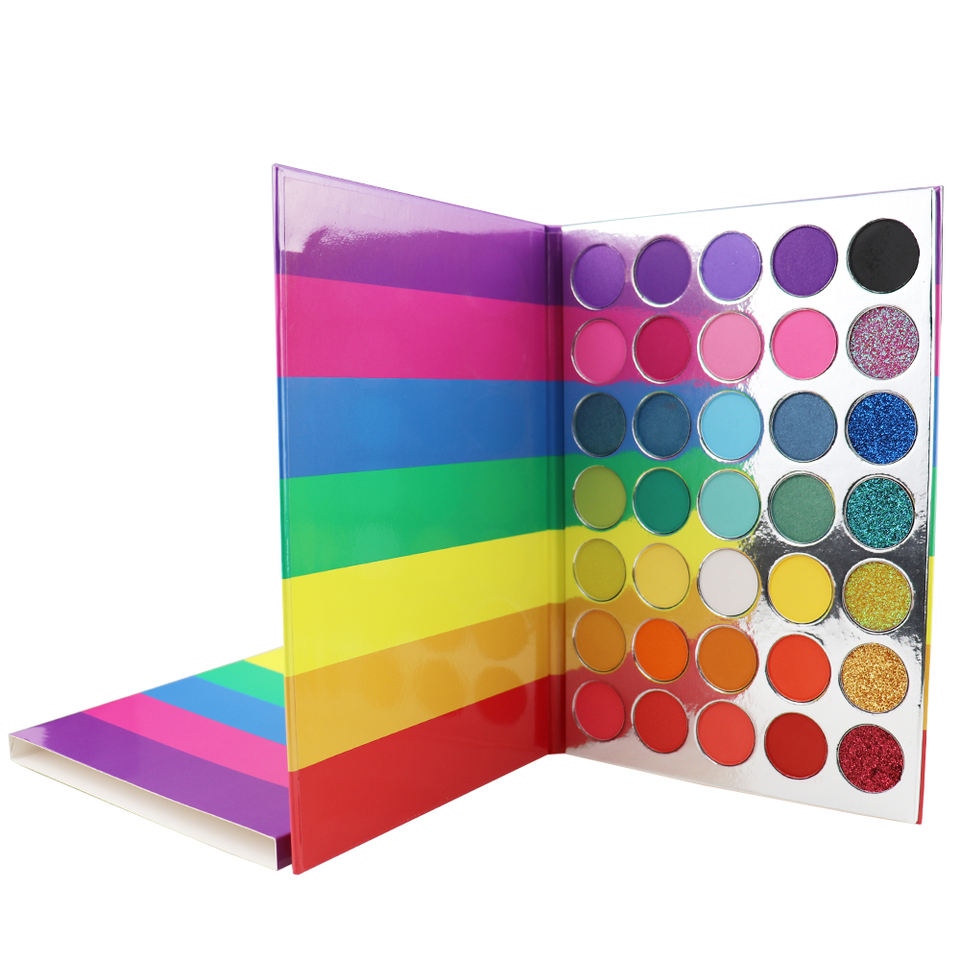 Rainbow Bright High Pigment Eyeshadow Palette 35 Glitter Colors Private Label Makeup for Eyes