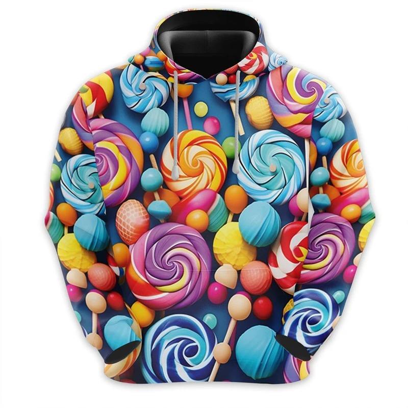 Rainbow Candy 3D Print Hoodies for Men Fashion Design Pullovers Sweets Snack Graphic Sweatshirts and Hoodies