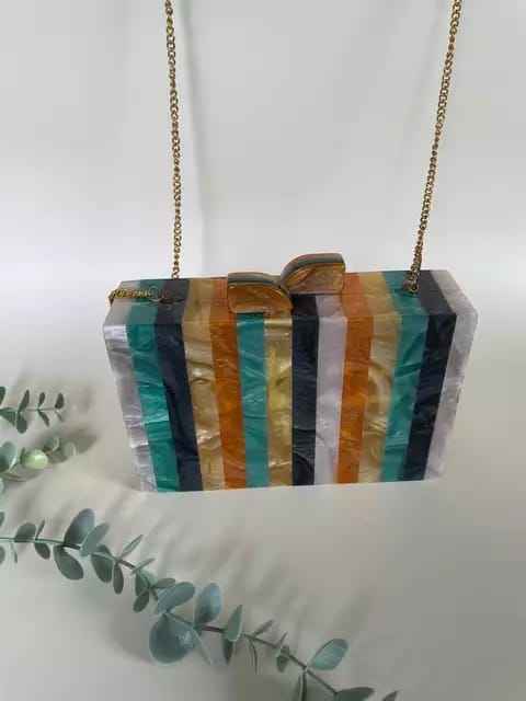 Rainbow Diamond Resin Clutch Imitation Pearl Gold Plated Luxury Butterfly Solid Charm Clutch Complete Set Women's Wedding