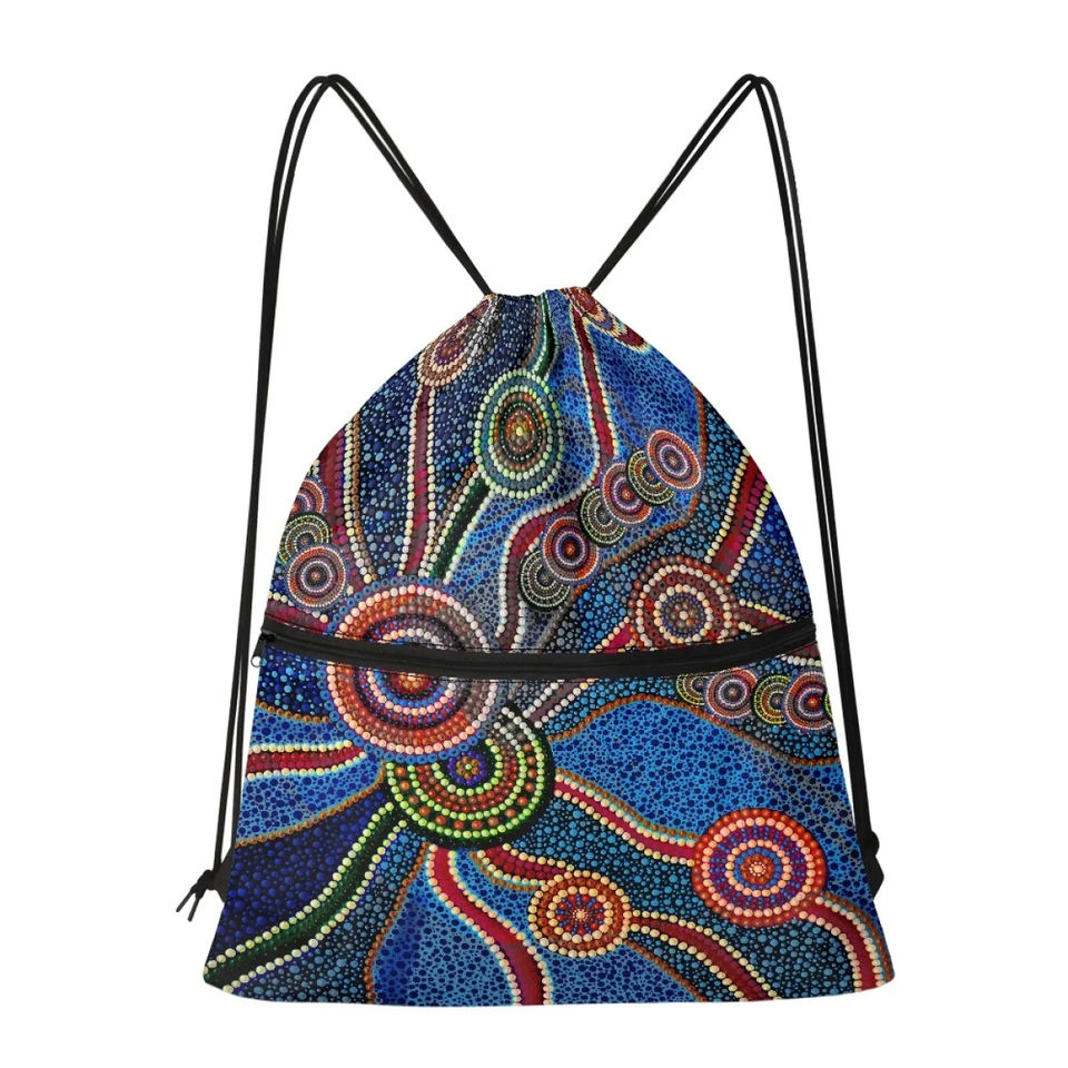 Rainbow LGBT Gay Pride Drawstring Bag Backpack Black Draw String Cinch Bags for Sports, Travel, Beach