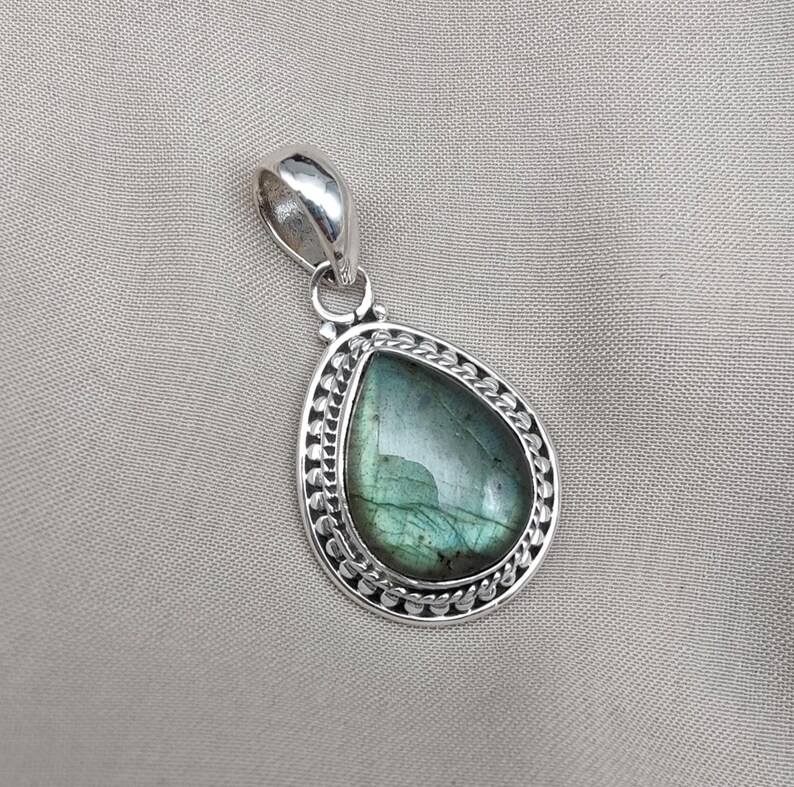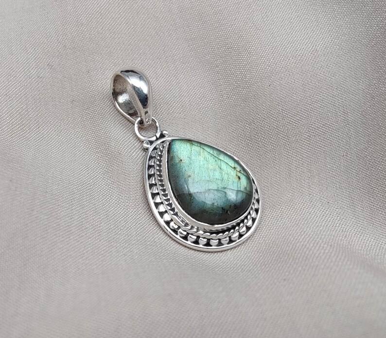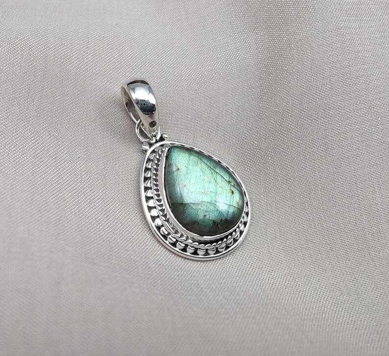 925 Sterling Silver Boho Style Necklace Rainbow Labradorite Crystal Pendant Handmade Vintage Jewelry Gold Plated for Engagement