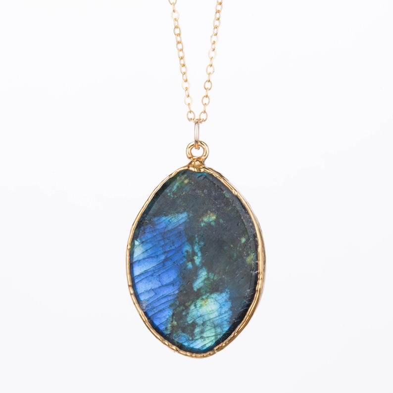 Multi Labradorite Pendant Drilled Pendant Necklace