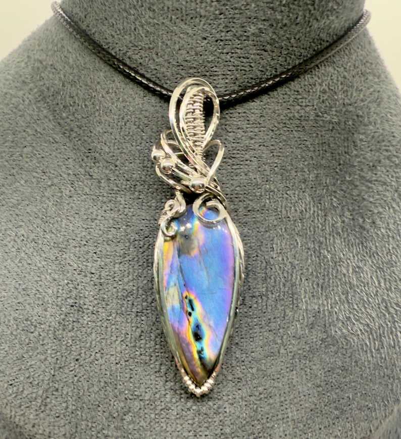 Rainbow Labradorite Wire Wrapped Pendant in Sterling Silver Handmade Necklace with High Grade Gemstone
