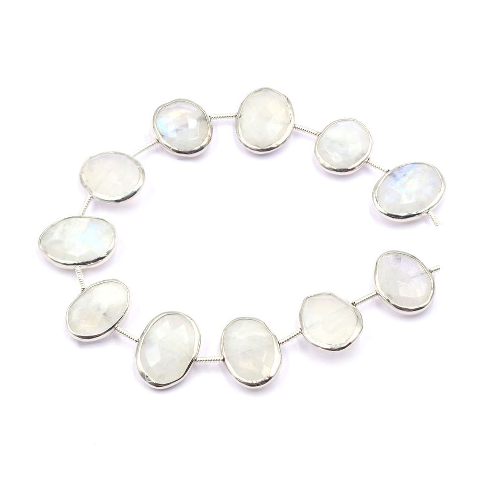Rainbow Moonstone Silver Plated Center Drilled 11 Beads Strand